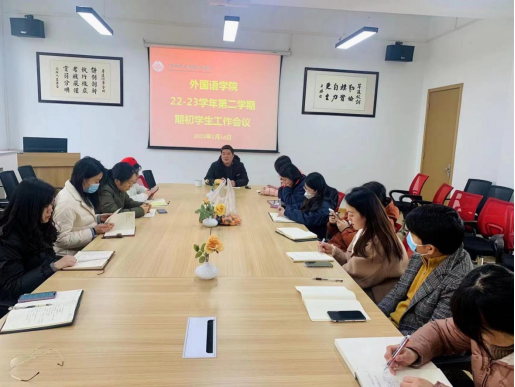 为确保新学期各项工作平稳、有序、高效开展,2月14日下午,外国语召开了2022-2023学年第二学期初学生工作会议,全球十大网赌正规官网党委书记石皓召、行政秘书丁玥及全体辅导员参会。