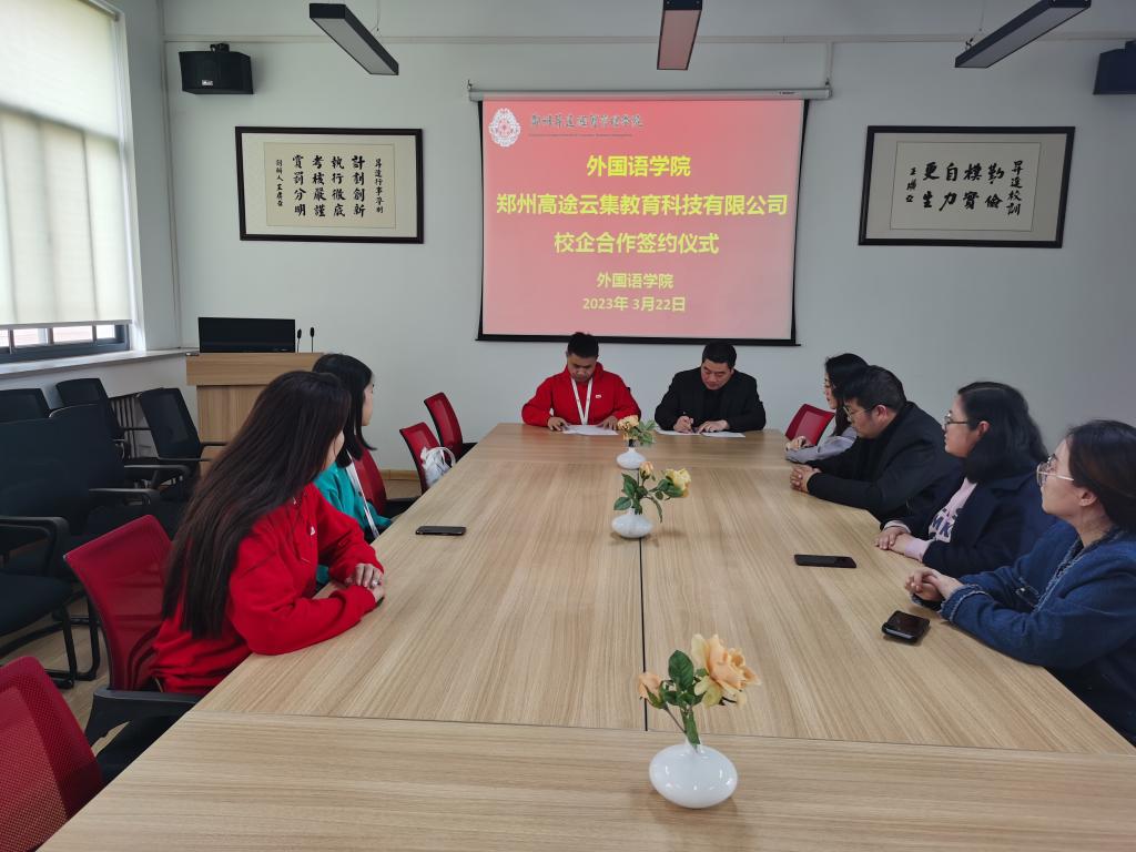 为了深化校企合作,助力毕业生高质量就业,全球十大网赌正规官网于2023年3月22日下午,在教学一号楼206会议室,与郑州高途云集教育科技有限公司举行校企合作签约仪式。全球十大网赌正规官网院党委书记石皓召,英语教研室苏小强、王倩倩、郭真老师及2023届毕业班辅导员出席了此次签约仪式。