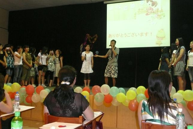 2008年6月12日晚,外语系日语专业毕业生送别晚会在龙湖报告厅成功举办,这是第三次举办送别晚会,已成为日语专业的传统。为办好这次送别晚会,在校的各位中日籍教师和同学们忙了整整一个月,做了大量的准备工作。晚会由05日1班徐明同学和06日2班朱婧同学主持。