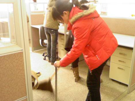 班会后,同学们在班团支部的组织下为系老师打扫办公室整理材料感恩老师的教育培养,集体为老师献上一份爱心。(王凌洁供稿)