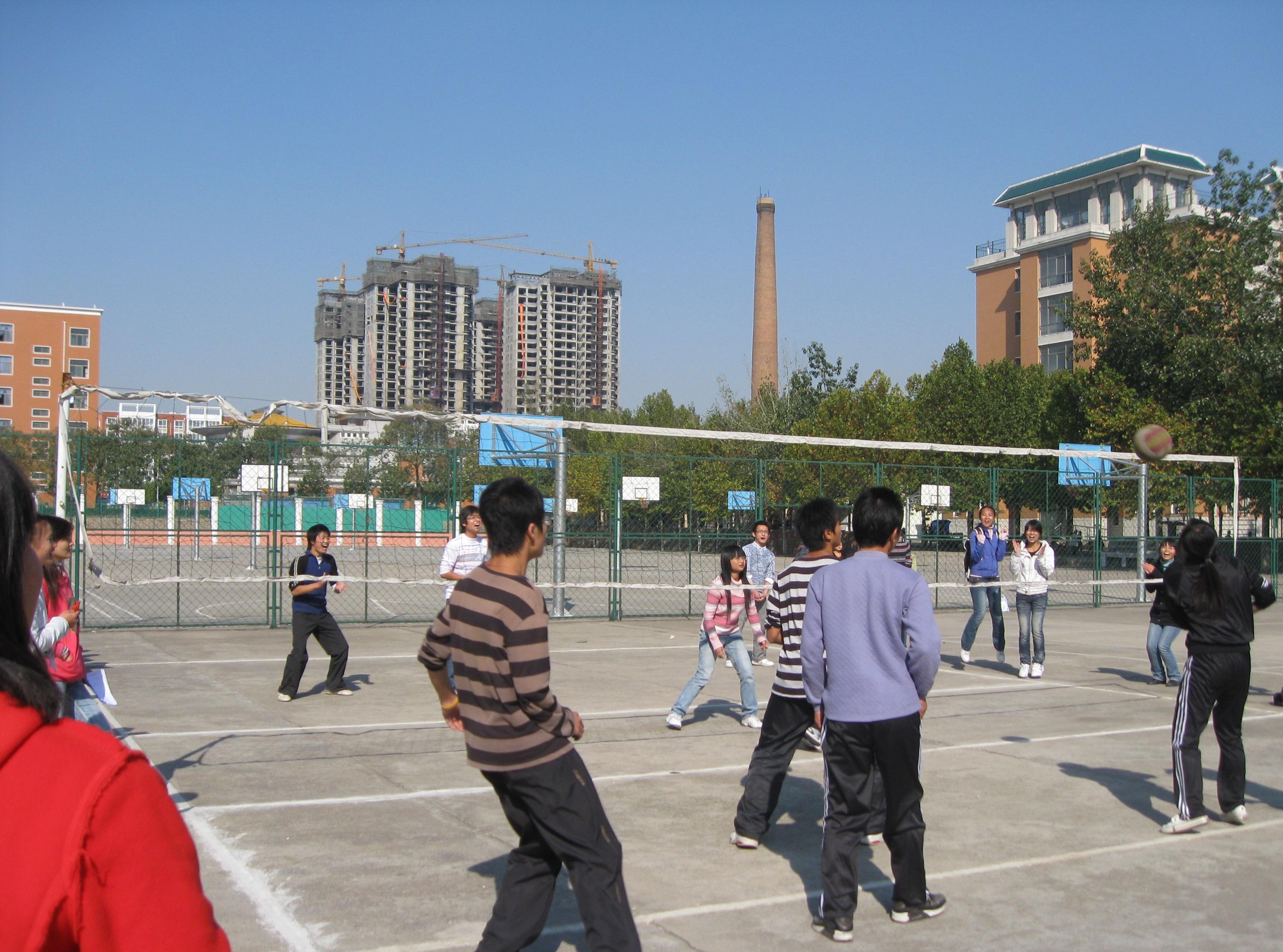 2009年11月2日中午12:30,由外语系体育部主办的排球比赛迎来了冠军赛。历时三天的排球赛共有13个班级参加,经过激烈角逐和精彩比拼脱颖而出的09级日语班和商英三班等四个班进入了决赛。