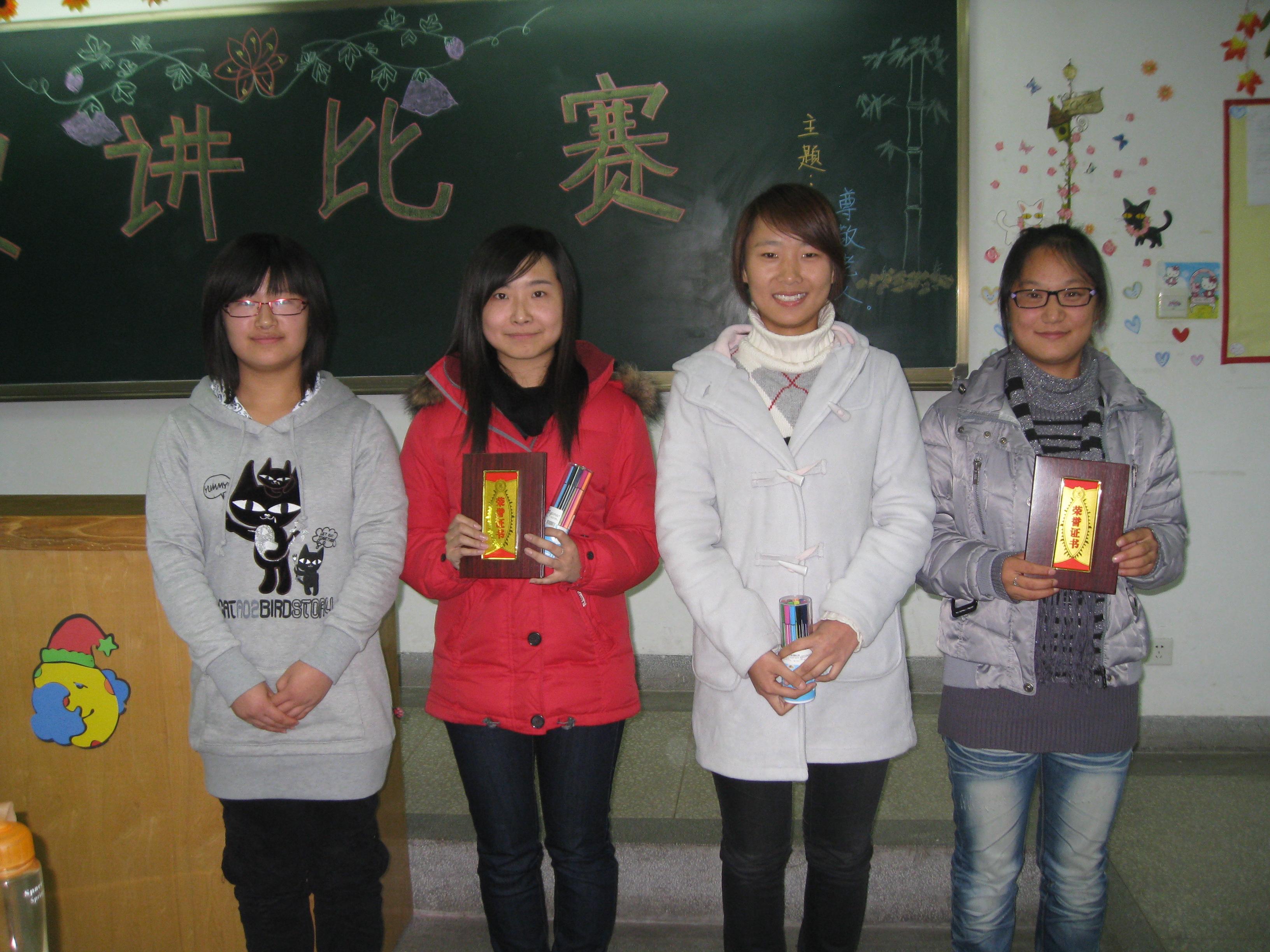 经过评委们的认真评比,来自08级商英二班的朱朝栋获得本次大赛一等奖,08级商英四班的唐盼盼和赵亚文以及08级日语一班的刘晓菲获得二等奖,09级口译一班魏薇等同学获得三等奖。学生会副主席王婧为获奖选手颁奖,并为本次大赛做了精彩点评,鼓励同学们在日常生活中一定要严格要求自己,发扬尊师敬老的传统优良品德。
