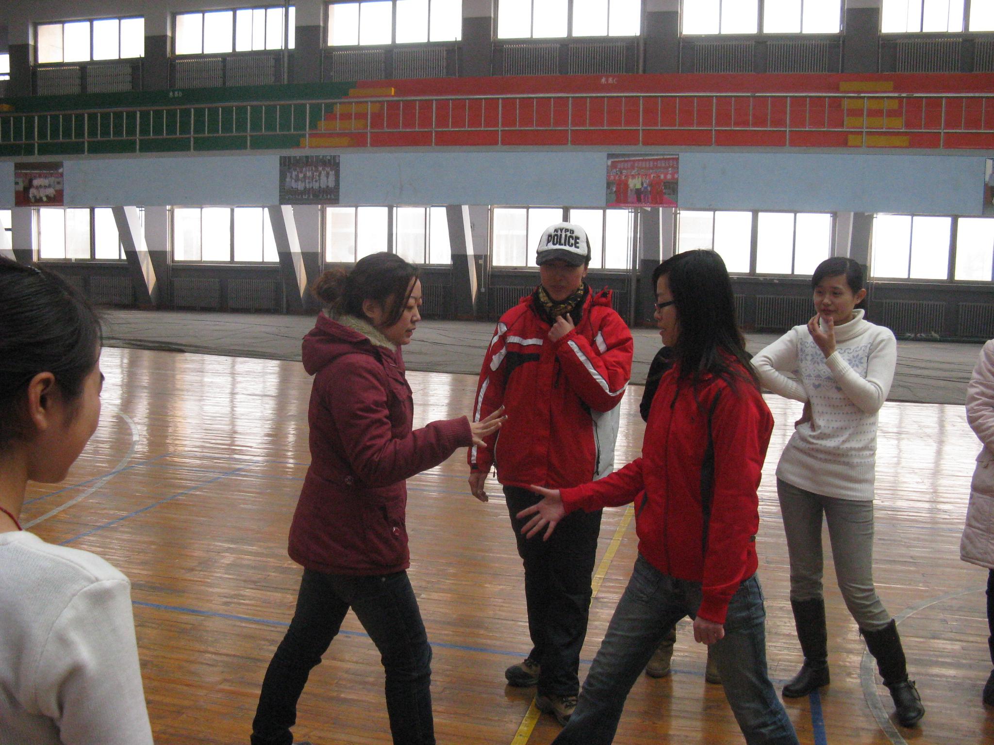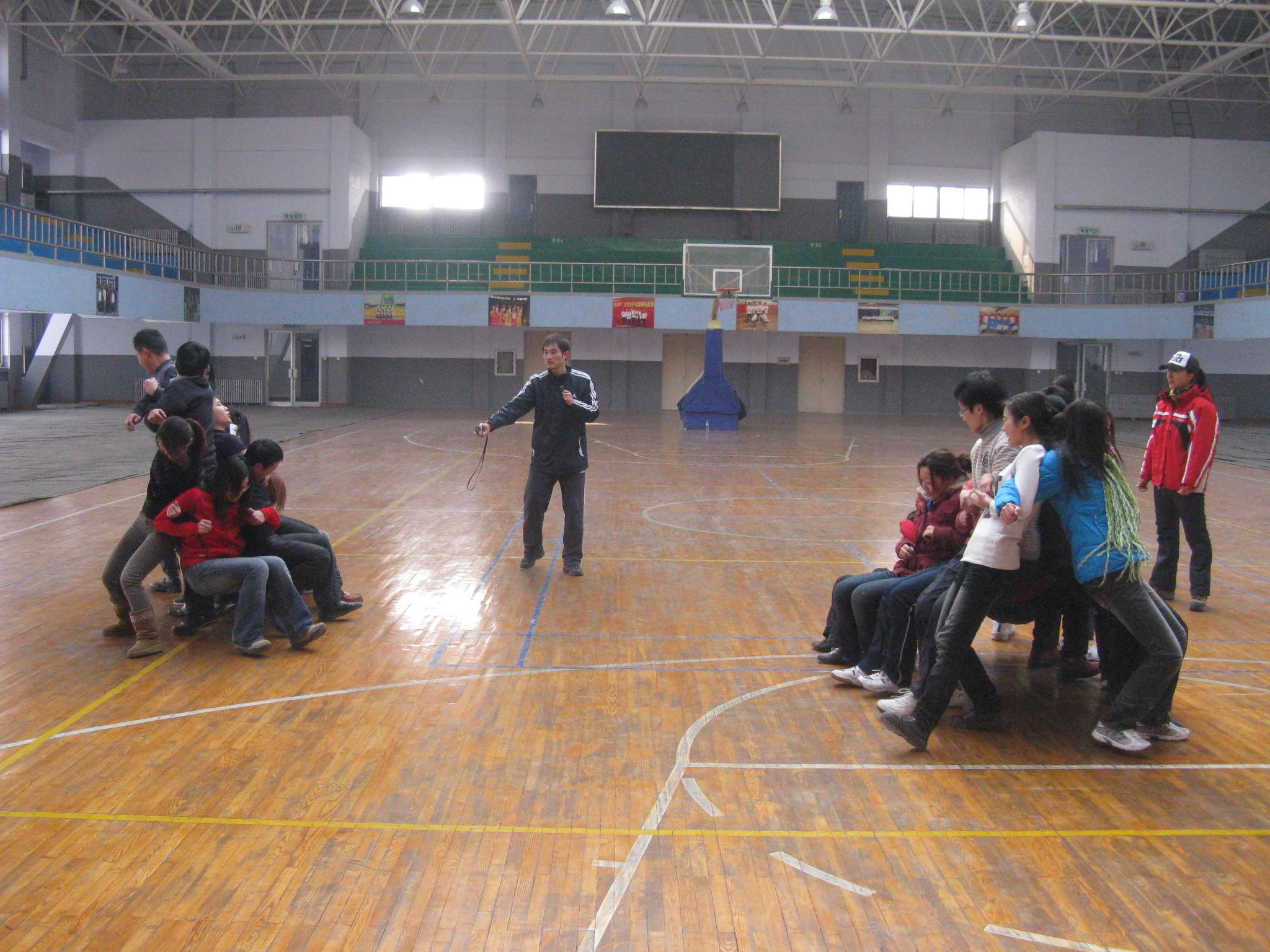 1月8日上午,作为我系辅导员培训周的第三项内容。外语系辅导员安排好手中的工作,身着运动服,精神抖擞,在党总支副书记石皓召老师的带领下,齐聚体育三楼馆,开展了精彩的素质拓展活动。体育部对我系的此次活动给予了大力的支持,不但安排了合适的场地,特地分派陈洁冰、张丽两位经验丰富的老师作为教练,带领我系参训人员进行活动。