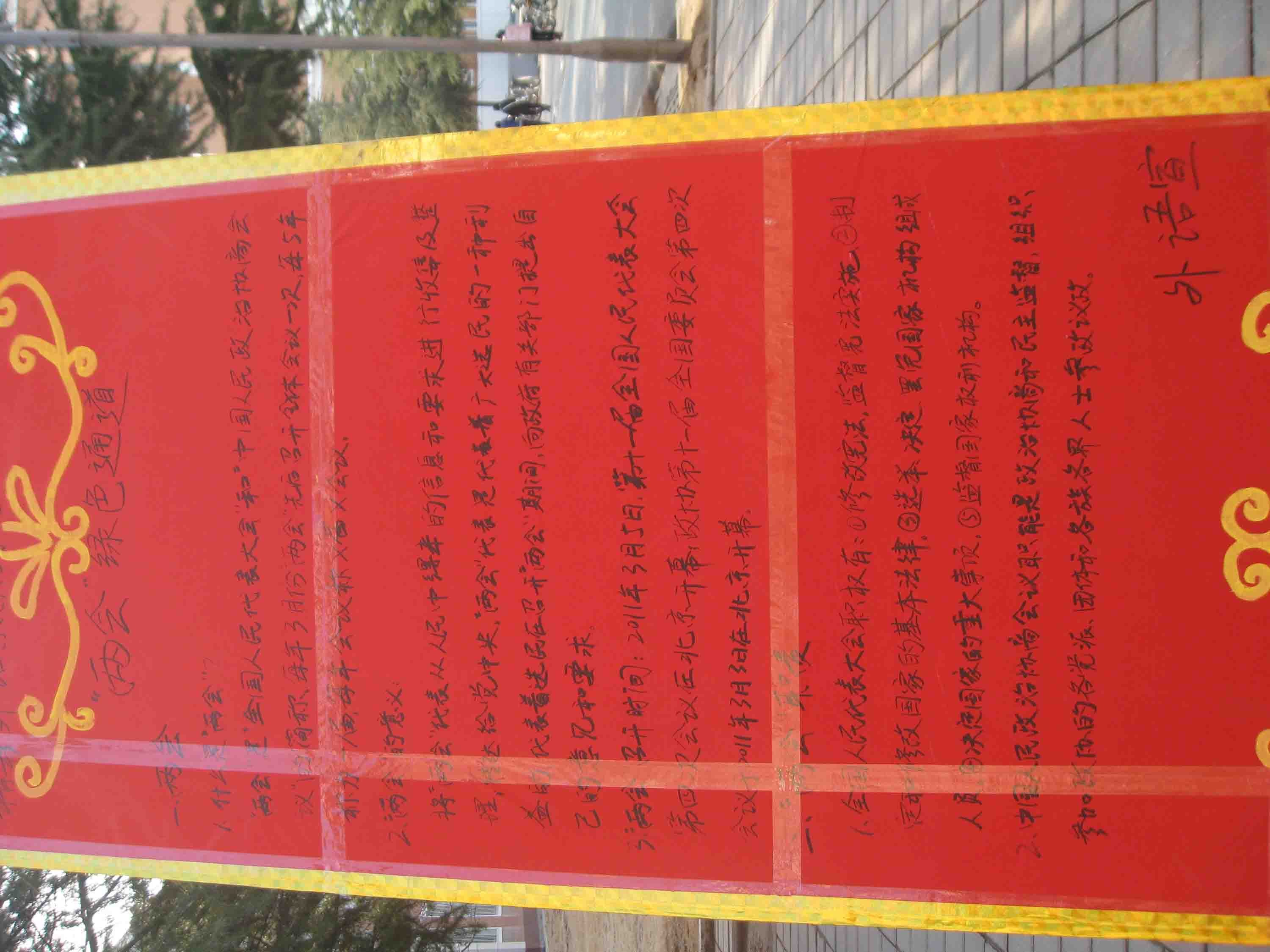 政协第十一届全国委员会第四次会议及第十一届全国人民代表大会第四次会议分别于3月3日和5日在北京开幕;为了让同学们更多的关注两会,更好的了解两会,外语系党总支启动了两会的宣传学习月活动。
