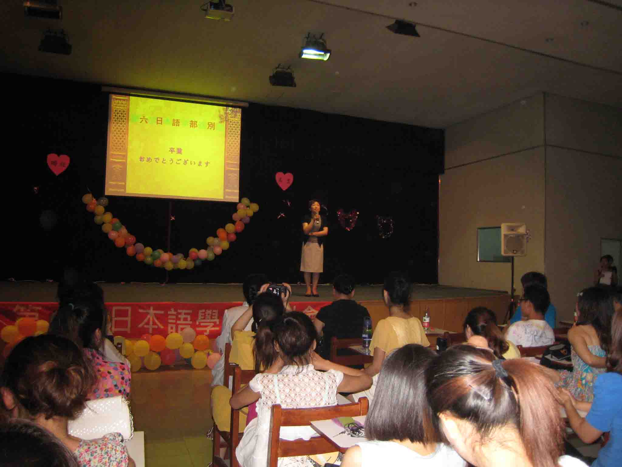 2011年6月15日晚7点第六届日语专业送别晚会在龙湖报告厅激情上映,外语系全体日语专业学生参加了本次晚会,外语系党总支乔卫书记,日语专业全体老师以及外教应邀出席。
