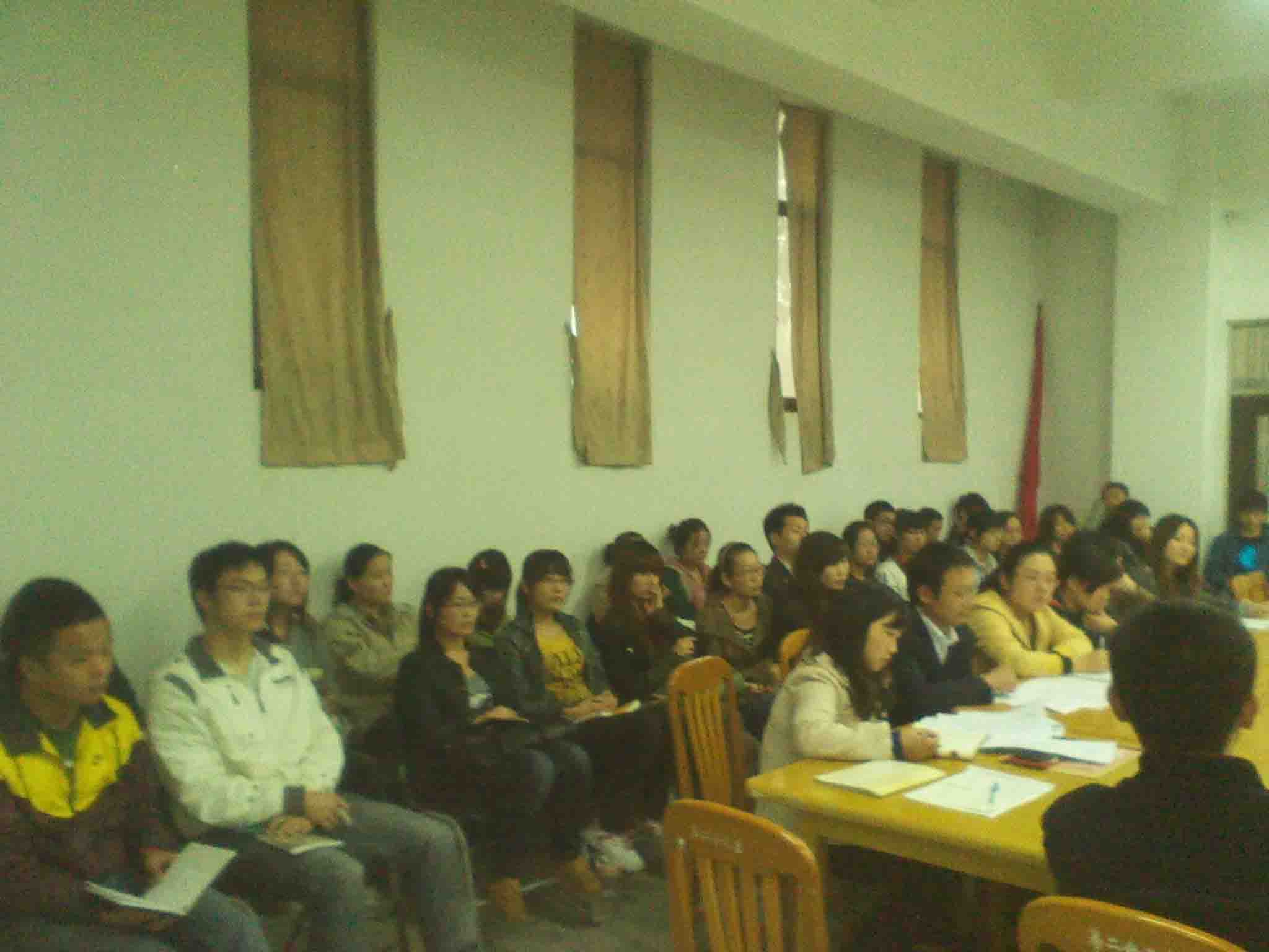 2011年10月11日,外语系2011年度国家奖助学金评审工作会议在外语A楼103会议室如期举行。参加本次会议的人员有党总支书记乔卫同志,全体辅导员老师以及32名学生代表,共计45人参加,会议由副书记石皓召同志主持。