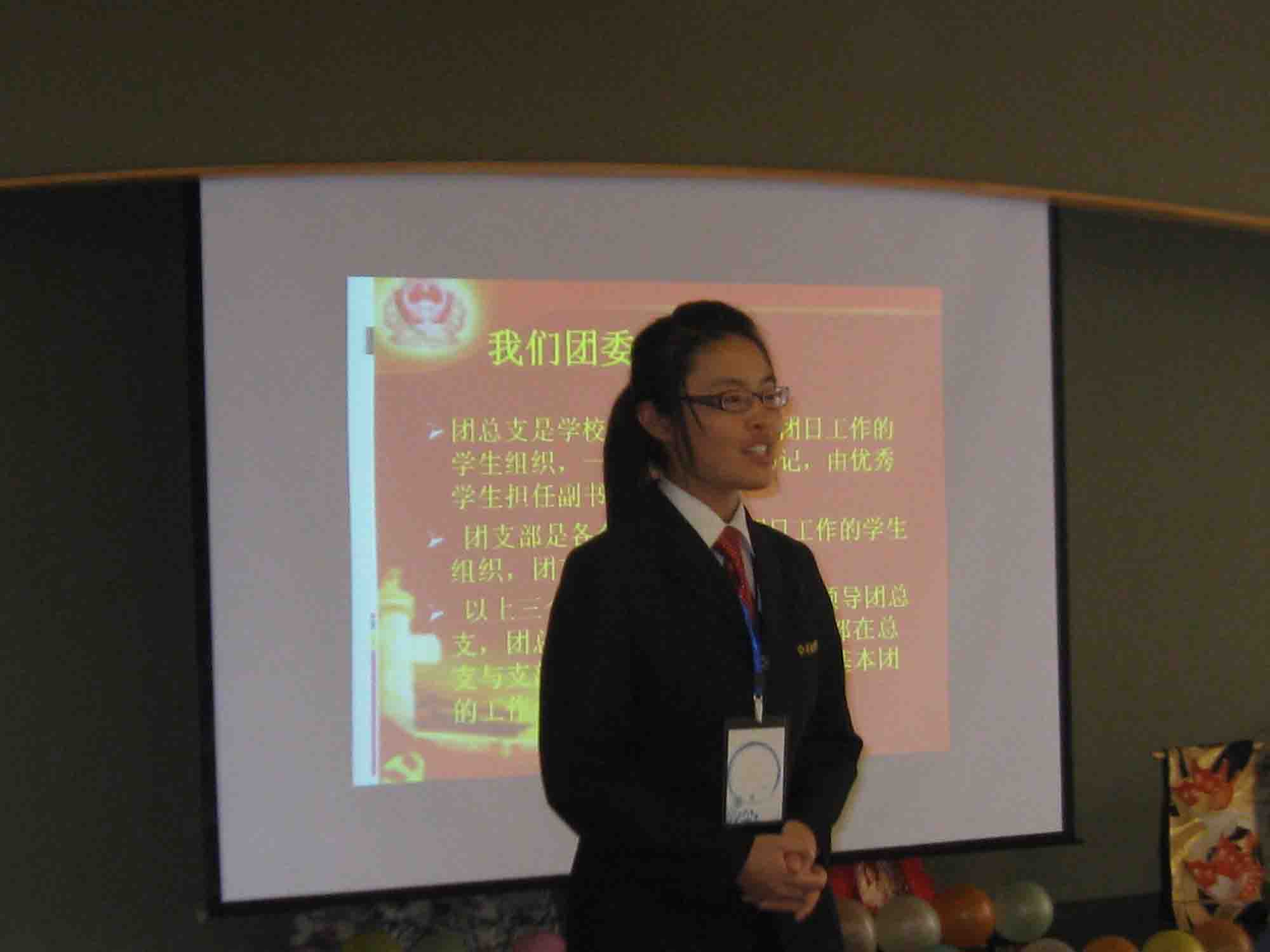 会议在齐唱共青团团歌声中拉开帷幕。党总支副书记石皓召同志做了讲话。他从三个方面强调了各班团支部建设和日常工作的责任与义务,让各班团务工作人员对团委的工作有了比较深刻的认识。之后,团委组织部部长尚晓瑜为大家介绍了团委内部的工作与联系及团日活动的内容。接着,做为特邀嘉宾,曾获得学院优秀团干并带领班级获得过优秀团支部的09级商英二班张晓娟同学、09级商英四班孙洁同学,分别就自己开展班级团支部工作的经验进行了分享。并鼓励大家积极交流和沟通,从而更有效地完成团委的工作。最终,大会在大家携手齐宣承诺词中圆满落下帷幕。