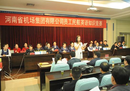 河南省机场集团有限公司举办的英语知识竞赛,旨在提高员工外语专业素质,为了提升比赛的专业性和公正性,特邀请我系三名专职英语老师担任现场评委,一名英语专业学生但任大赛主持人。