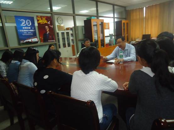 9月28日下午2点30分,外语系特聘教授冯永臣译审为2014级现代高级涉外文秘专业10名新生做了生动的专业报告。外语系主任马秉义教授,外语系专业教师闫冰老师参加了报告会。