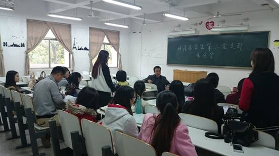 为了深入学习领会、全面贯彻落党章党制,切实把思想和行动统一到党员的先锋模范上来,努力把宣传、建设思想工作做得更好,外语系学生第二党支部,于2015年10月29日下午2:30,在外1-305教室召开党支部全体党员会议。