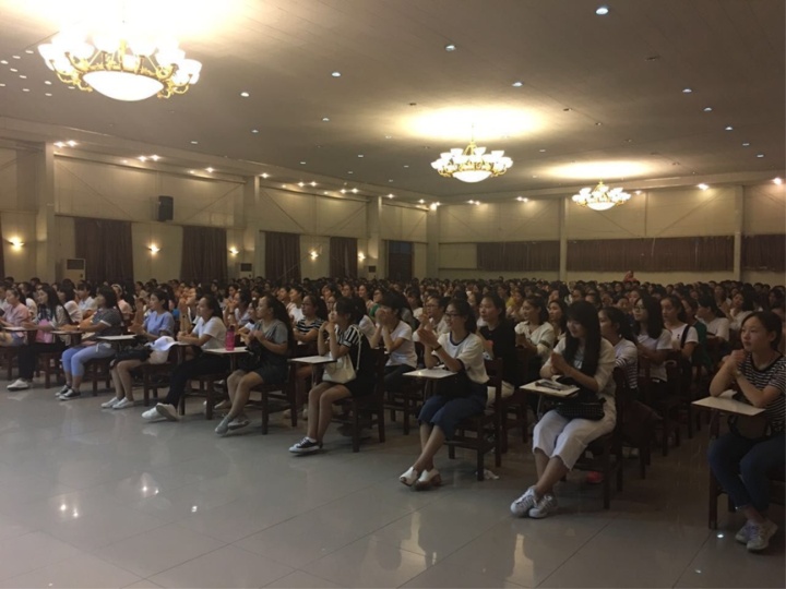 9月10日晚7点,外语系2016级新生军训动员大会在龙湖报告厅隆重举行,外语系主任张梦教授,系党总支书记石皓召同志,副主任崔瑾英副教授,教学秘书王璨老师,行政秘书惠凯赟老师,新生辅导员赵丽红、崔艳婷老师,5位新生军训教官以及2016级全体学生参加了此次会议。