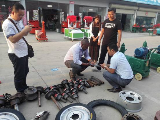 惊喜一个连着一个,在同学工作的过程中,一名坦桑尼亚的客户过来看产品。彭川勇总经理亲自带领着客户参观,班级也派出两名同学作为翻译随同。客户对我们的产品非常感兴趣,每见一个产品都要驻足细看并且询问。
