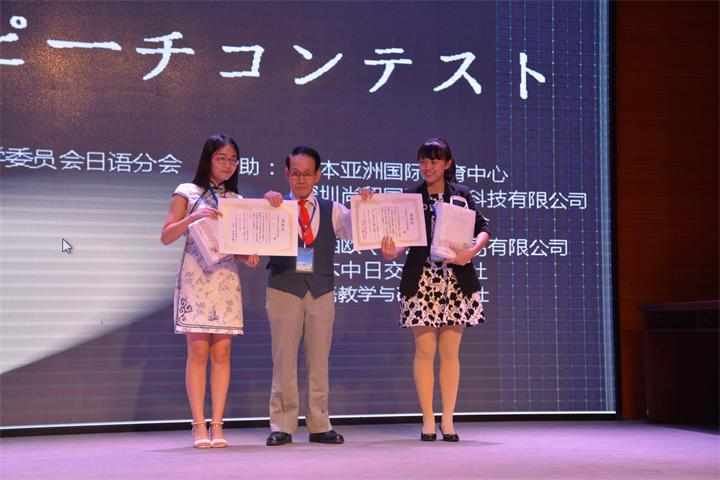 经过激烈角逐,我院选手姬甜梦荣获一等奖,赵明明荣获二等奖的佳绩。姬甜梦同学今年7月份曾在国际日语能力水平考试(最高级别一级)中取得满分的成绩,这在全世界应试者中都属罕见。赵明明同学因其纯正的发音、流利的口语赢得了日本三重县日中友好交流协会草深茂评委的认可,他本人还特意为赵明明同学颁发了特别奖,赞美她“完美地表现了自己所学所感,为中日交流做出了贡献”。