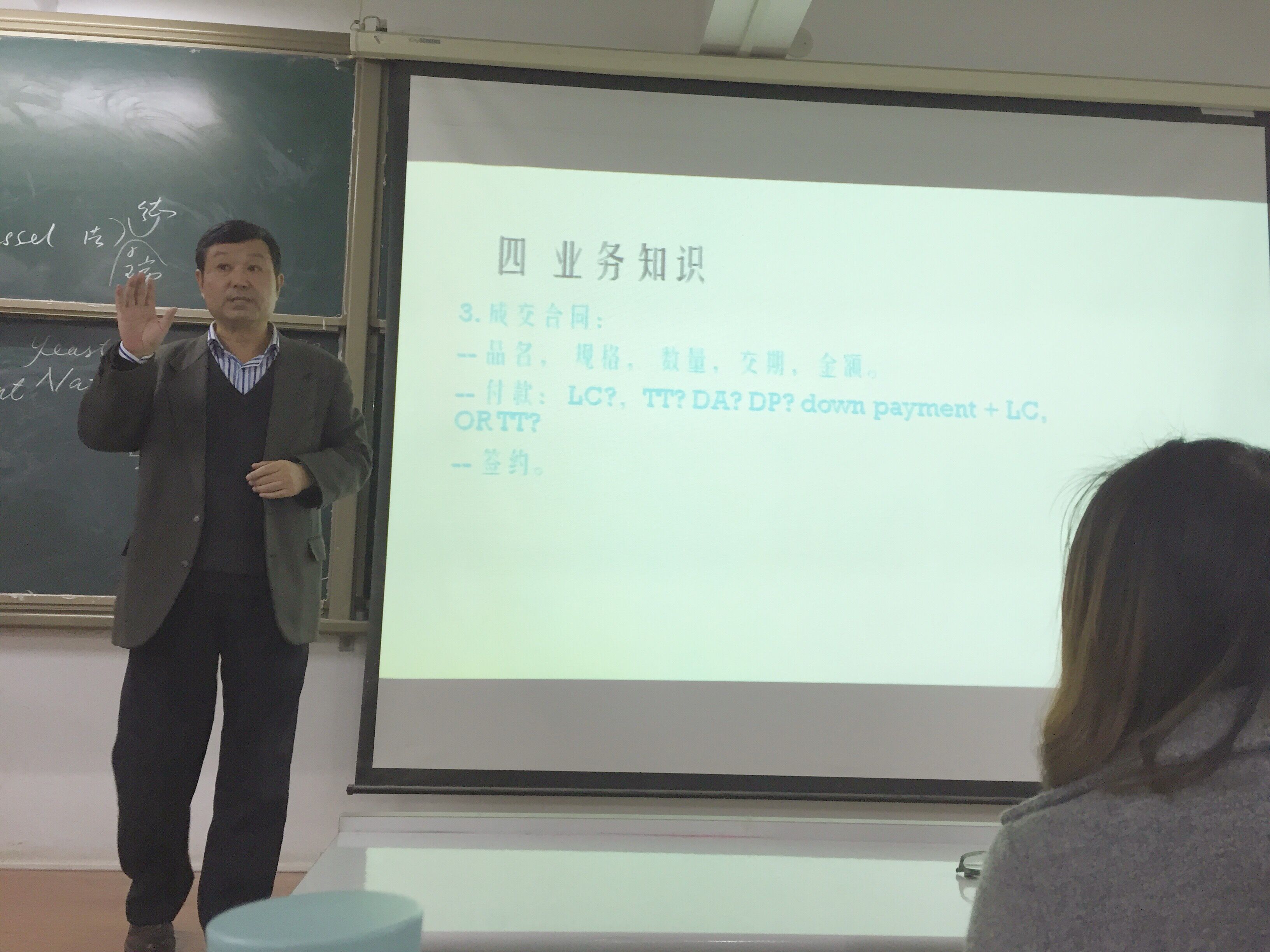 他首先指出语言基础在国际贸易中的必要性和重要性,强调“要有好的英语听力理解和沟通能力,语速不必求快,清楚明了尤为关键”。然后,他指出“贸易归根结底是人的交往,要与客户交朋友,要有共同的话题,比如历史、诗歌、宗教等,所以不论是在校期间还是以后走上工作岗位,都要多读书,不断丰富自己的内涵”。他还举例解释了同是基督教的天主教与新教的差异,同是伊斯兰教的逊尼派与什叶派之间冲突的原因,旁征博引,令人印象深刻。