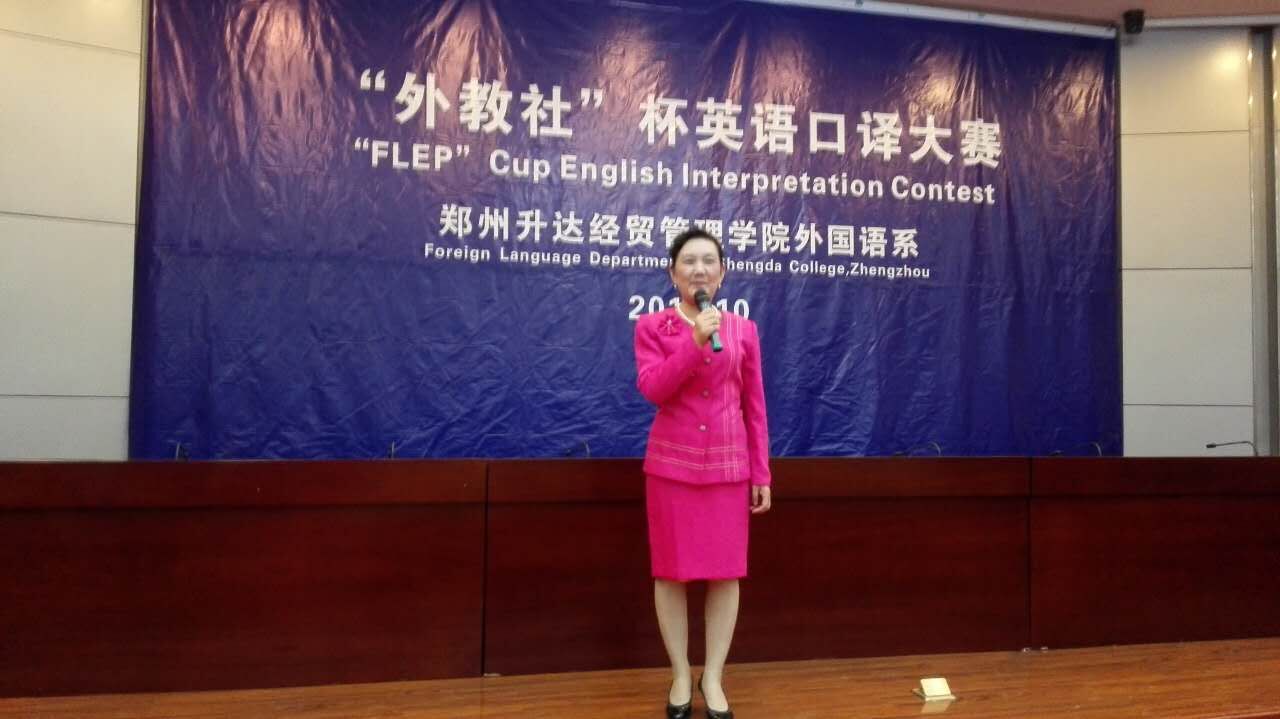 10月27日下午,由外国语系主办的“外教社”杯口译大赛在国际会议厅举行,院长郭爱先、教务处处长吴益民教授、外国语系主任张梦教授前来观赛,比赛邀请外国语系专业、权威的教授和专家担任评委。