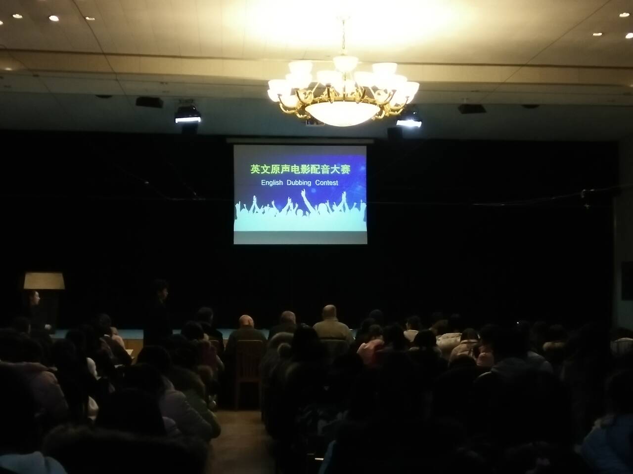 11月23日晚6点30分,外语系配音大赛在龙湖报告厅隆重举行,现场座无虚席,外语系闫冰 ,熊华霞,Jerry ,Joy,Jerome,Robert六位老师担任评委。