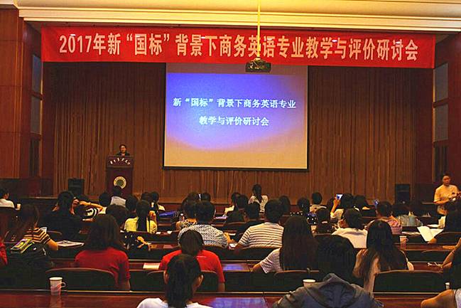 中国对外经贸企业协会郑樑副会长在开幕式致辞中指出,国际贸易行业是商务英语应用最大的行业,而语言类教学对国际贸易行业的贡献不容忽视。从2007年教育部批准成立商务英语专业至今,已整十年,而国贸行业也在不间断关注该专业的建设。他认为,新“国标”为商务英语专业建设提供了新的衡量标准,而这也要求该专业在教学与科研活动中,要坚持其硬性特色——应用性。对此,他提出两点建议。一是专业老师在今后的专业建设中应关注语言对国贸行业的应用,如当前“互联网+”中的跨境电子商务,以及“一带一路”中与特定贸易对象的文化交际;二是不同的经济区域,贸易和商务的属性不一样,对人才和语言的要求也不一样,因此要避免同质化,在专业建设中体现自己的特点。