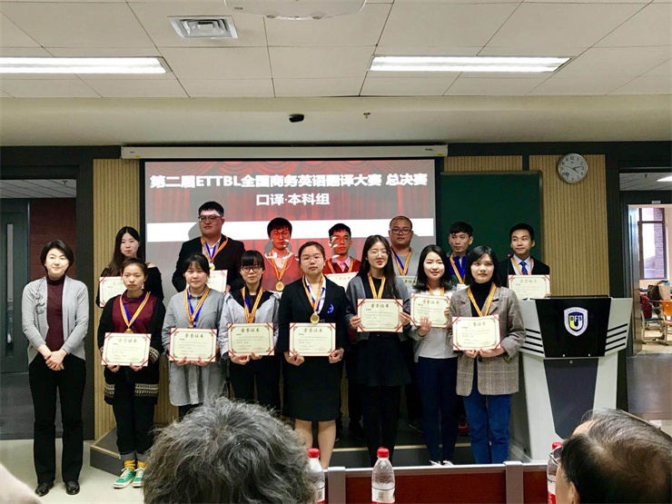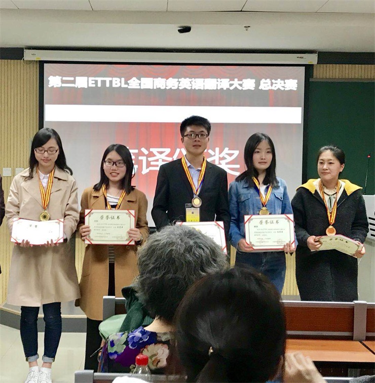 4月15日,在全国商务英语翻译考试办公室和全国商务英语翻译专业委员会主办、北京外国语大学和《英语世界》杂志社协办的“第二届ETTBL全国商务英语翻译大赛”中,我校全球十大网赌正规官网两位选手表现优异,14级英语班闫汉同学荣获本科组笔译三等奖,15级英语(高级口译方向)班李萌洁同学荣获本科组口译优秀奖。