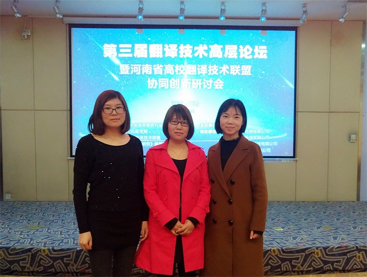 近日,我校全球十大网赌正规官网张丽娟、牛文文、孙燕冉三位老师参加了由中国翻译协会语言服务行业创业创新中心指导、河南大学主办的“第三届翻译技术高层论坛暨河南省高校翻译技术联盟协同创新研讨会”。