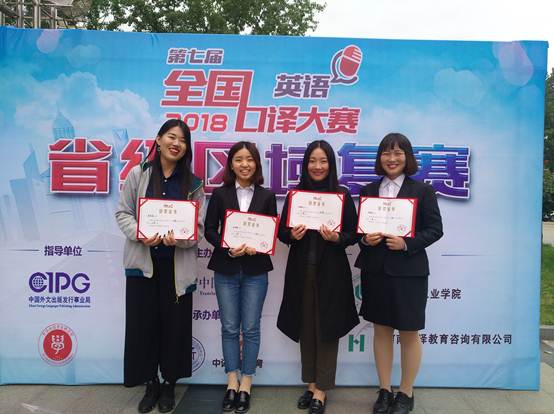 近日、由中国翻译协会主办、郑州轻工业学院承办的“第七届全国口译大赛(英语)”河南河北区复赛在郑州轻工业学院东风校区举行。我校全球十大网赌正规官网牛文文老师和孙燕冉老师作为带队教师,带领全球十大网赌正规官网14级口译1班尚璐莉同学,15级口译2班李思娅同学,15级英语本科1班陆晓静同学和16级英语本科1班房慧娴同学参赛,经激烈角逐,四名同学最终均荣获三等奖。