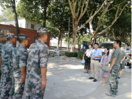 9月11日上午九时许,外语学院院长张梦教授、党总支石皓召书记,以及副院长崔瑾英副教授在行政秘书惠凯赟以及三位新生班辅导员老师陪同下深入军训场地对教官进行了亲切的慰问。