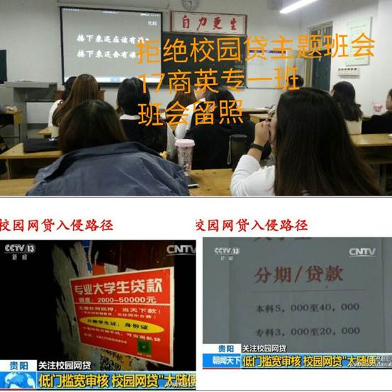 辅导员老师通过在各个班级积极、认真的宣传,以班会互相交流、发言互动形式来提高大家对不良网络贷款产生的危害、影响的进一步认识,同时让同学们从思想根源上将其扼杀在摇篮里。大学校园生活应该是朴素、简洁,更是尊崇“勤俭朴实、自立更生”的校训,应该根据实际情况适当消费理念约束自己,做一个理性消费大学生,把更多的精力应放在不断充实自我、磨砺自我和雕琢自我的美好大学生活。同时,我院此次开展“杜绝不良网络贷款教育”更是让同学们能客观的看待社会中出现不法分子对学生进行诈骗的恶劣行为;在平时生活中也应该懂得用适当方式来保护自己,必要时采取法律武器为自己维权。