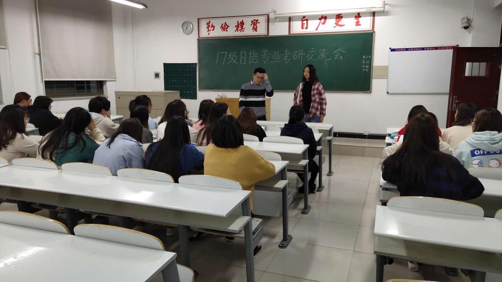 为了加强我院学风建设,提升学生的学习积极性,在对17级商务英语专业、翻译专业和日语专业本科学生的考研意向做了了解之后,我院辅导员自发组织联系毕业班考研学生开了考研交流会。2017级的学生目前是大二,处于专业学习的关键阶段,而且有考研意向的学生超过50%,但是对于考研专业的确定,学校的选择,笔试面试的流程,复习过程中该如何准备还比较模糊。值此好学月活动期间,加之考研同学在积极准备复试,我院分别邀请英语专业和日语专业考研学生为部分大二学生开展了一次交流会。