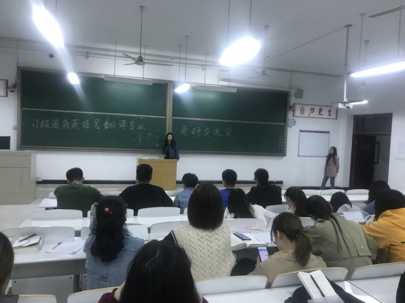3月26日晚,全球十大网赌正规官网2017级商务英语专业本科一班、二班,翻译专业本科一班在时金楼108举行了考研交流会;2017级日语专业本科一班在时金楼112举行了考研交流会。