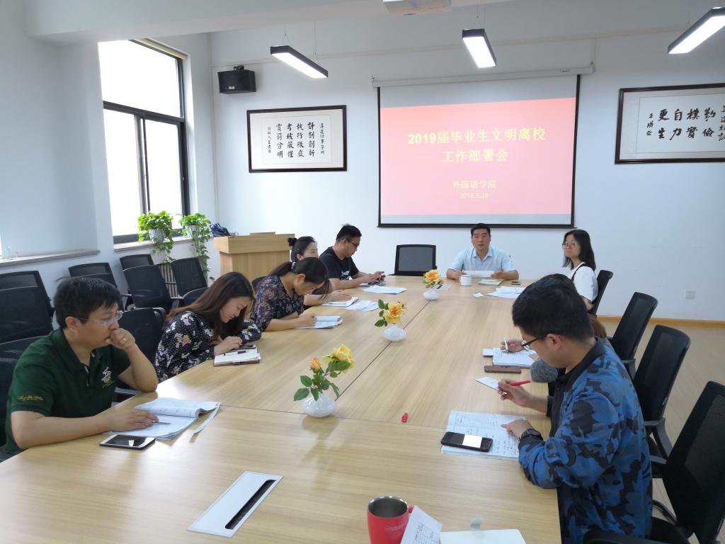 为了进一步加强校园安全文明建设,做好毕业生文明离校的相关工作,全球十大网赌正规官网于5月28日下午组织召开了毕业生文明离校工作筹备会,会议由党总支书记石皓召同志主持,行政秘书惠凯赟老师及全体辅导员参加了会议。