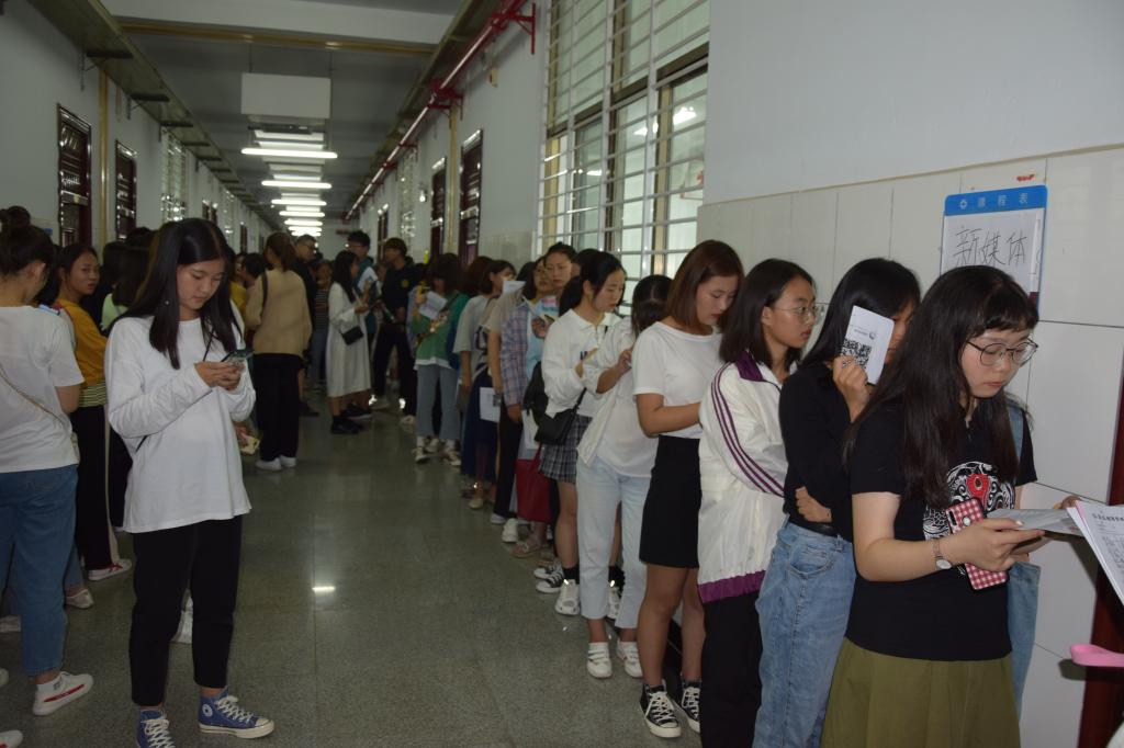 在面试开始之前,同学们早早来到了面试地点,怀揣着他们对各自向往部门对热爱,在各部门招新处排队签到,等待面试。