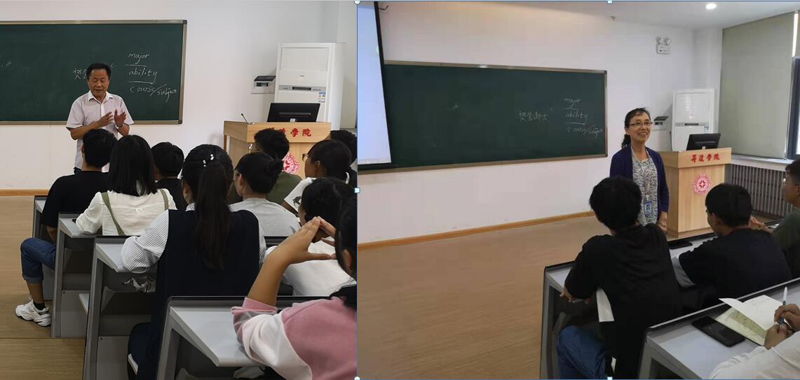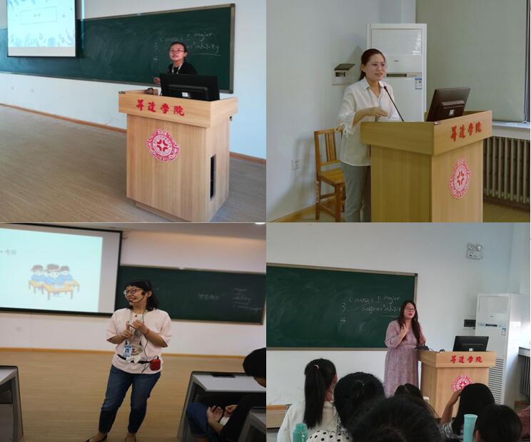 接着张丽娟老师、许静老师分别从考研方面讲解了大学四年如何打好英语基础,做好考研规划,此外,张丽娟老师还和同学们分享了英国访学的种种趣闻,鼓励大家要大胆树立梦想,要拥有国际视野,勇于挑战自我。周老师也从自己非洲的经历,身边亲人的例子告诉同学们升达不是终点,是大家奋斗的起点,现在努力是最恰当的时候!最后袁亚敏老师和弓慧雯老师分别用英语和同学们现场热聊,举例分析英汉表达方式的不同,激起了同学们学习英语的兴趣和热情。