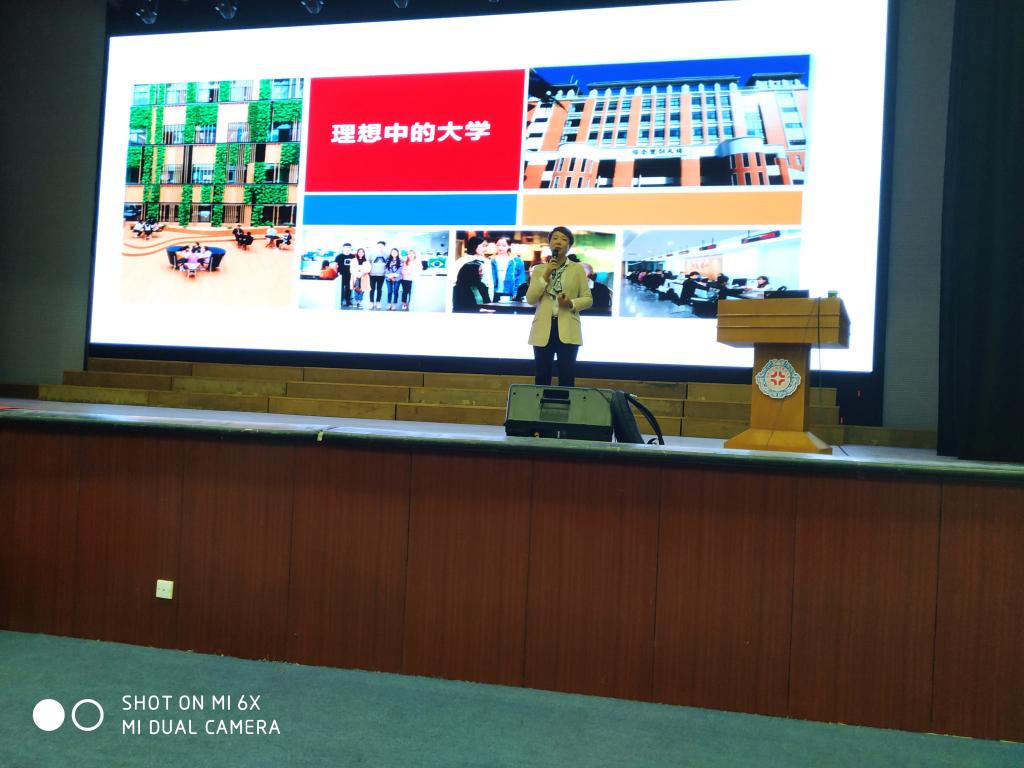 讲座邀请双创学院张芳老师为19级新生主讲。讲座围绕“为什么上大学”、“怎么上大学”、“学长踩过的坑”三个问题展开,张芳老师风趣幽默,娓娓而谈,不时和台下同学问答互动。讲座台下同学,到位准时,听讲认真,互动积极,秩序优良;整场报告内容充实,启发性强。