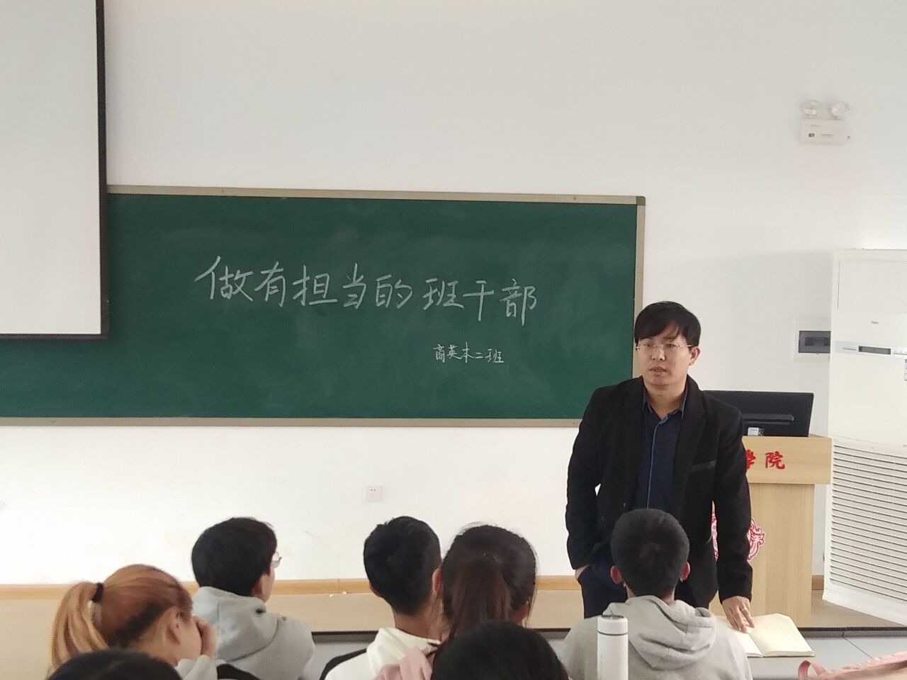 在王鑫老师的见面会上,他首先每个同学都应该树立主人翁意识,为班级建设献计献策,学生干部应该担起营造互帮互助,争先创优的班级氛围的责任在班级建设、专业学习竞赛等方面积极想办法,共同开创佳绩。