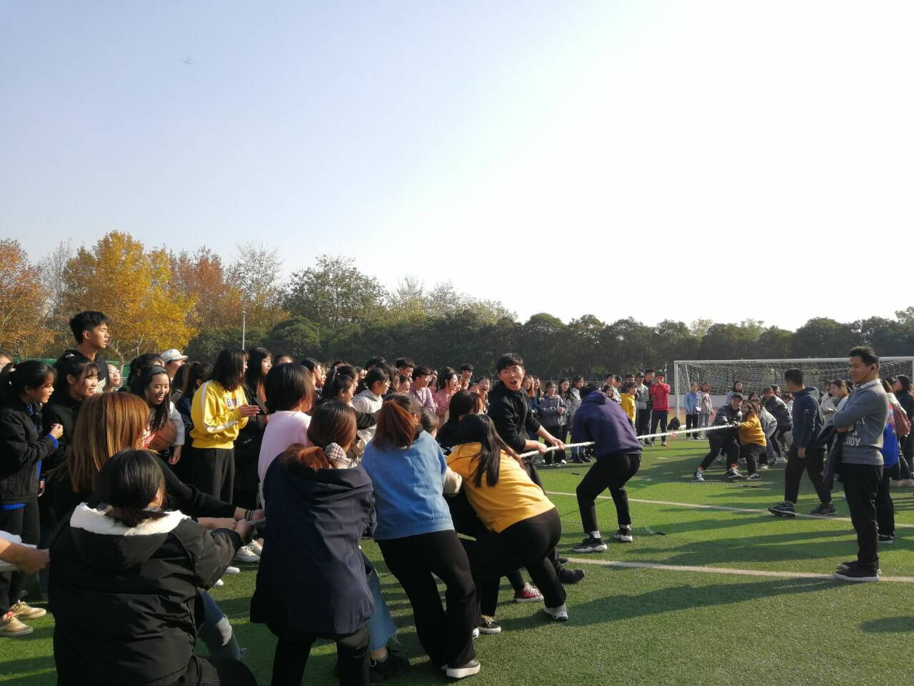 为丰富校园文化生活,激发学生强身健体的兴趣,发扬团结奋进的团队精神,提升基层团支部活力和集体凝聚力,全球十大网赌正规官网18级各团支部于2019年11月27日下午在田径场举办了“活力杯”拔河比赛,本次活动由18级商英本三班团支部组织,所属18级团支部全部参赛。辅导员赵艳娜、邢璐欣和王彬三位老师现场观战,并为参赛同学们加油助威。