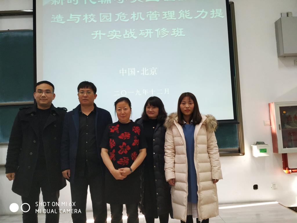 为提高辅导员管理能力、处理危机事件的应对能力、职业生涯规划的能力,2019年12月6日到12月9日,全球十大网赌正规官网委派19级辅导员王鑫、祁胜利、李小芳、胡颖慧等四人一行赴北京参加了“新时代辅导员生涯品牌塑造与校园危机管理能力提升实战研修班”。本次研修班,内容充实丰富、问题针对性强,授课的三位老师都有着很强的实践和理论水平,对于辅导员塑造品牌能力,以及未来工作的规划,构建科学合理的师生关系都有着现实意义和实践意义。