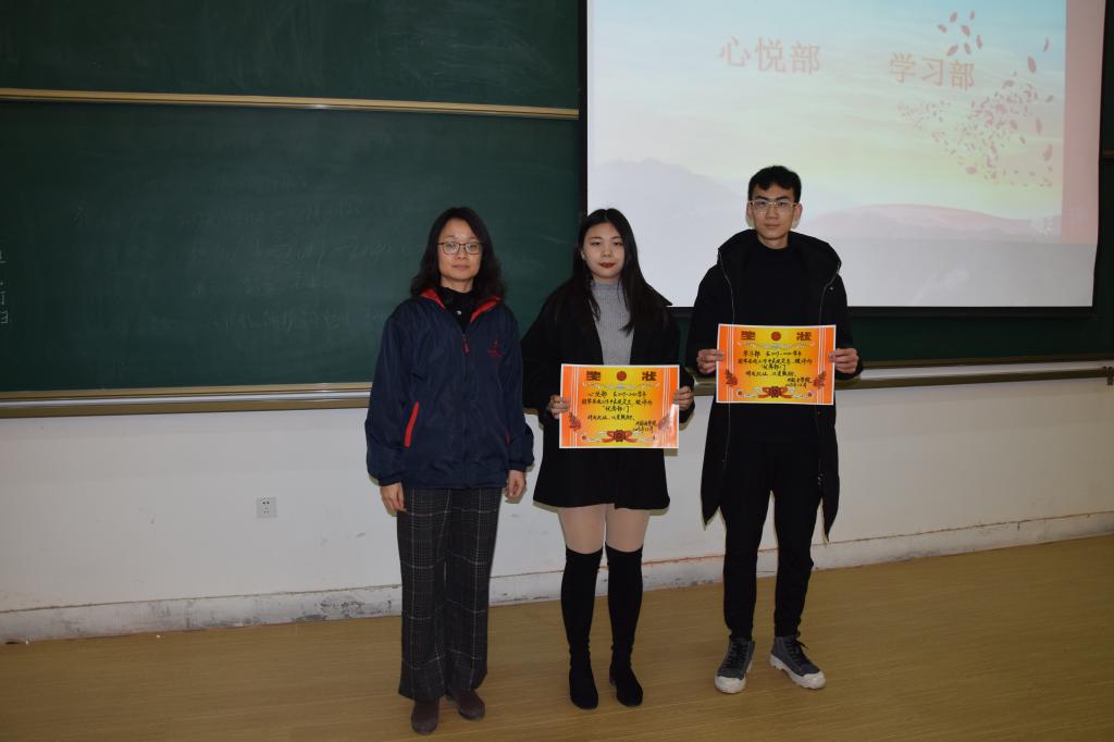 随后优秀干事代表学习部李静怡发言,首先用一段精彩的视频展示了学习部的活动,总结了学习部这半年来的成果,之后表示在这半学期的工作中,自己学到了很多,也成长了不少,感谢学长学姐对自己的帮助,也会在将来的工作中更加努力,为学习部这个大家庭做出更多的贡献。