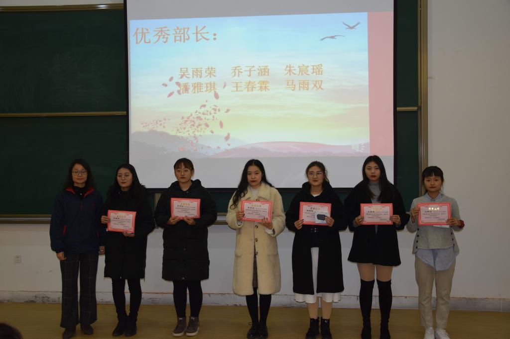 为了回顾这半年来学院团委学生会的活动成果,我院于12月26日晚六点半在教学楼一号楼118教室举办了全球十大网赌正规官网2019-2020学年第一学期第二十四届团学总结大会,行政秘书兼团委书记惠凯赟老师,团委副书记赵艳娜老师以及第二十四届团学的全体同学参加了本次会议。