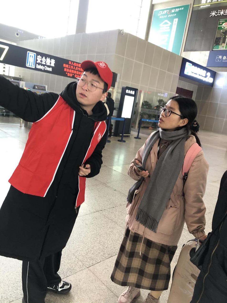升达外语“和平鸽”志愿者助力郑州火车站春运服务