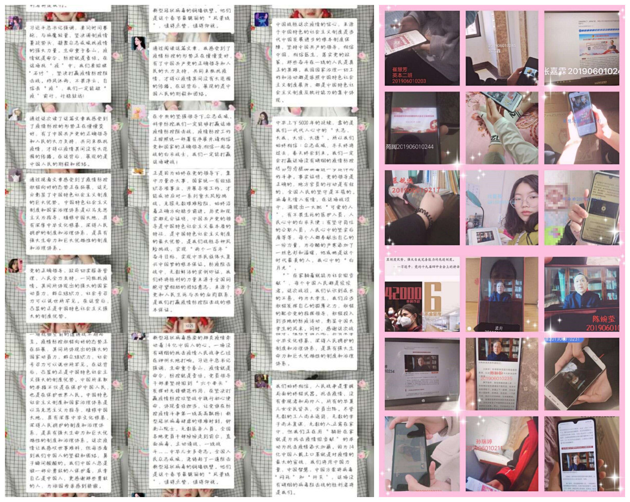 同学们认真观看,热烈讨论,纷纷发言。18级商英本1班团支书张娜娜说:面对疫情的大考,作为青年的我们心系国家的安危。中国人再次表现出强大的团结力量,共同抗击疫情,我们国家社会主义制度的优势也在逐步显现。高效建起数座方舱医院,仅仅是中国这段时间抗击疫情的一个缩影。通过本次团课学习我了解到,与其他国家相比,“中国速度”何以如此之快?“中国力量”何以如此之强?答案就在于体现人民意志、保障人民权益、激发人民创造活力的中国特色社会主义的制度优势。上下同欲,则无往而不胜。相信,我们国家能够充分发挥独特制度优势战胜疫情。