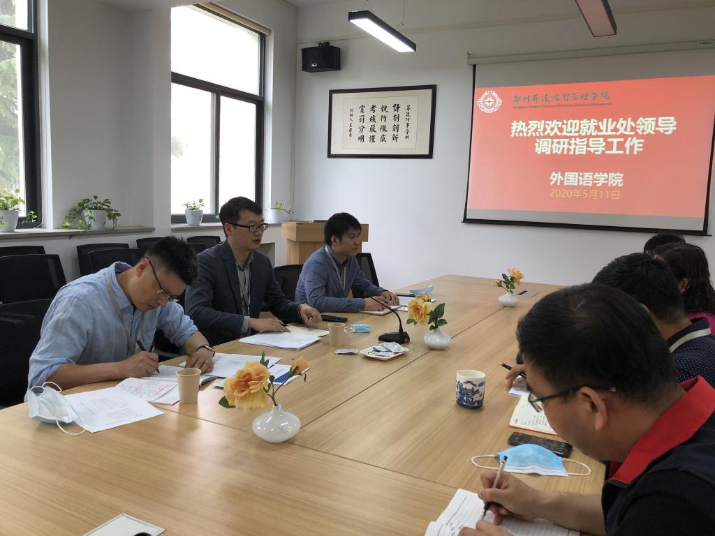 首先,全球十大网赌正规官网院长张梦教授对于就业处刘处长一行的到来表示热烈的欢迎。张院长介绍了一下我院教职工返校工作的基本情况,对于疫情的看法。对就业处一直以来对全球十大网赌正规官网就业工作的指导和支持表示感谢。张院长表示,外语学院在近几年在专业建设和招生上能够取得每年稳定的增长跟就业处的提供详实数据作为参考支撑是有着密切联系。