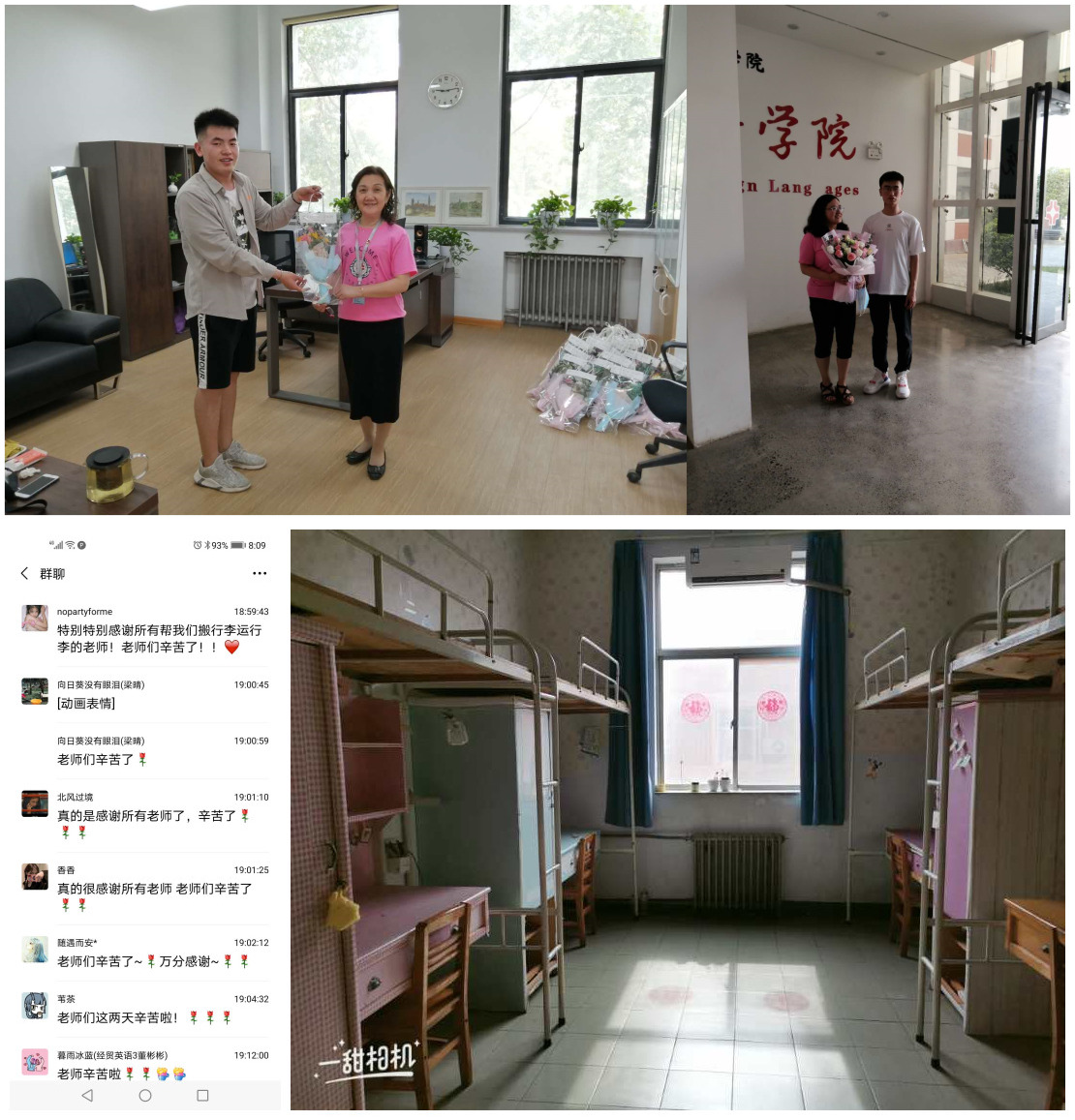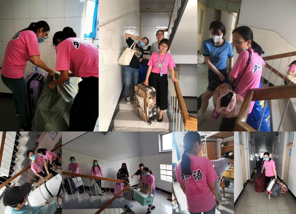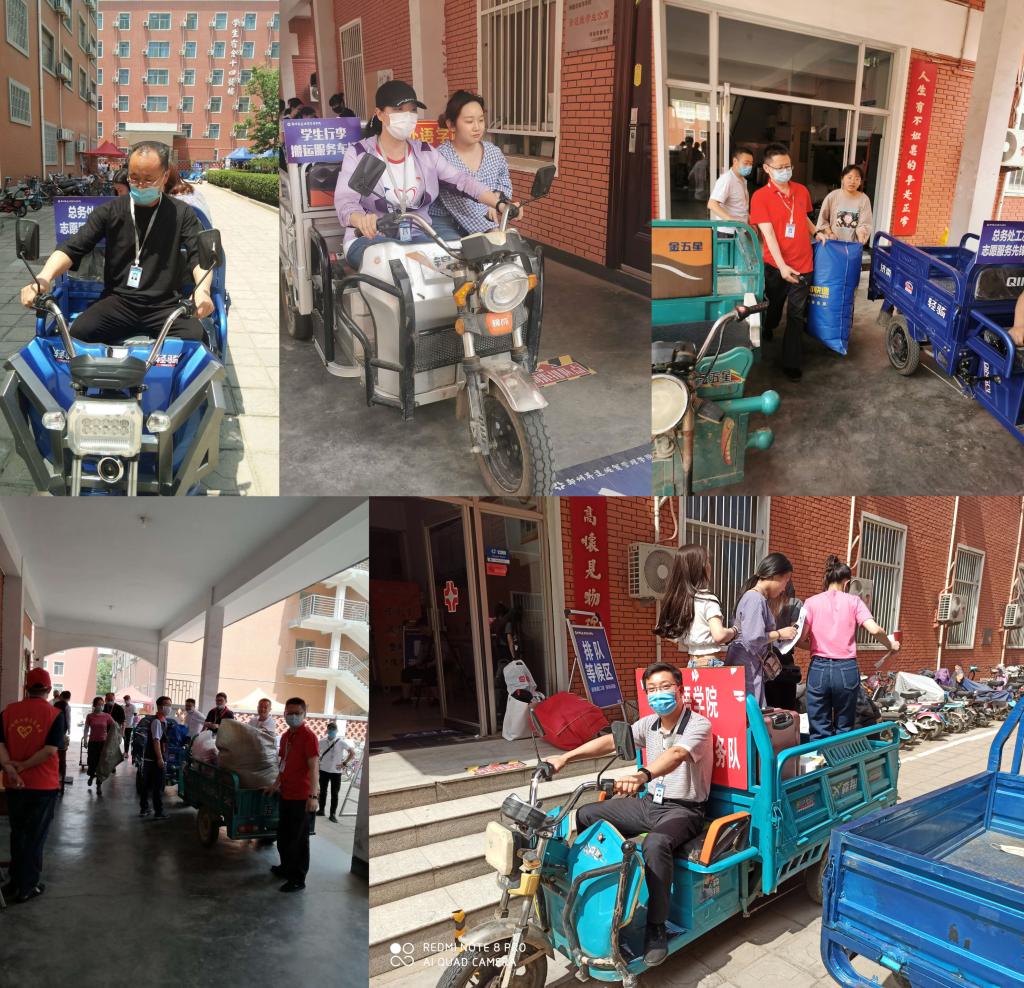 我院仅有的几名男教工,也在关键时刻,冲在一线,连续两天,在14号楼为毕业生搬运行李并装车。
