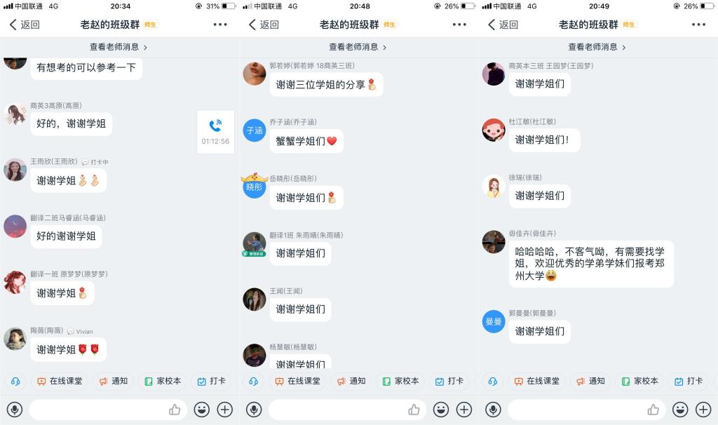 为帮助同学们明确考研目标,提高学习效率,18级翻译、商英本专业考研经验交流会于6月22日19:30在钉钉APP以线上会议方式顺利开展。本次交流会邀请了外语学院2016级英语专业四名考研成功同学分享经验,辅导员赵艳娜老师、18级翻译商务英语本科五个班级共计两百余名学生积极参加。