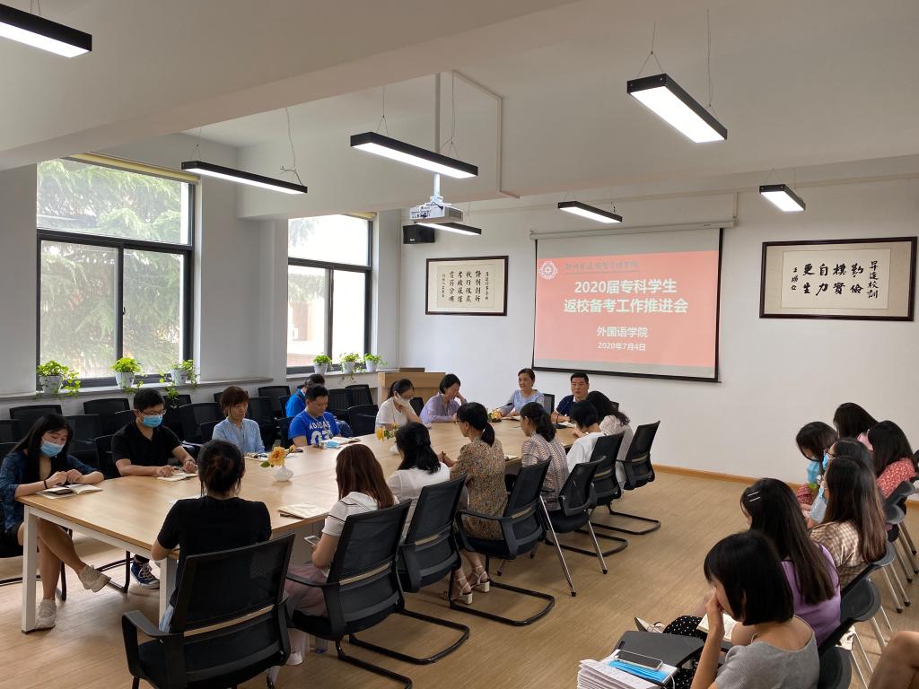 7月4日上午,全球十大网赌正规官网在院会议室召开了2020届专科生返校备考工作推进会。会议由张梦院长主持,院党总支书记石皓召同志、副院长崔瑾英副教授、行政秘书惠凯赟、教学秘书王璨、各教研室主任、各年级辅导员和教师参加了此次会议。