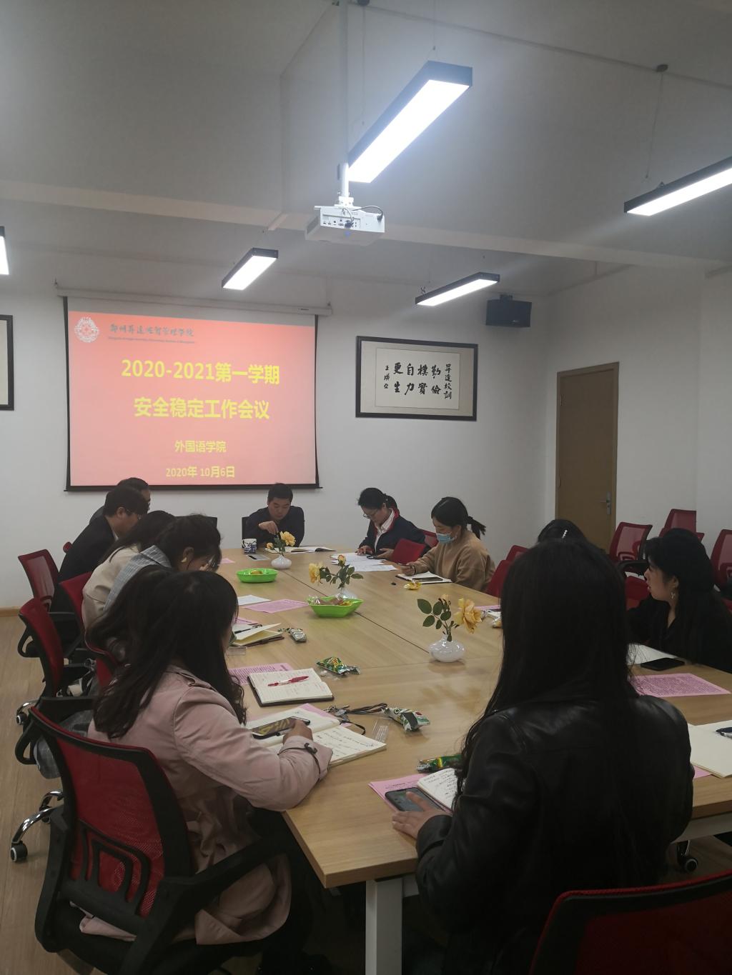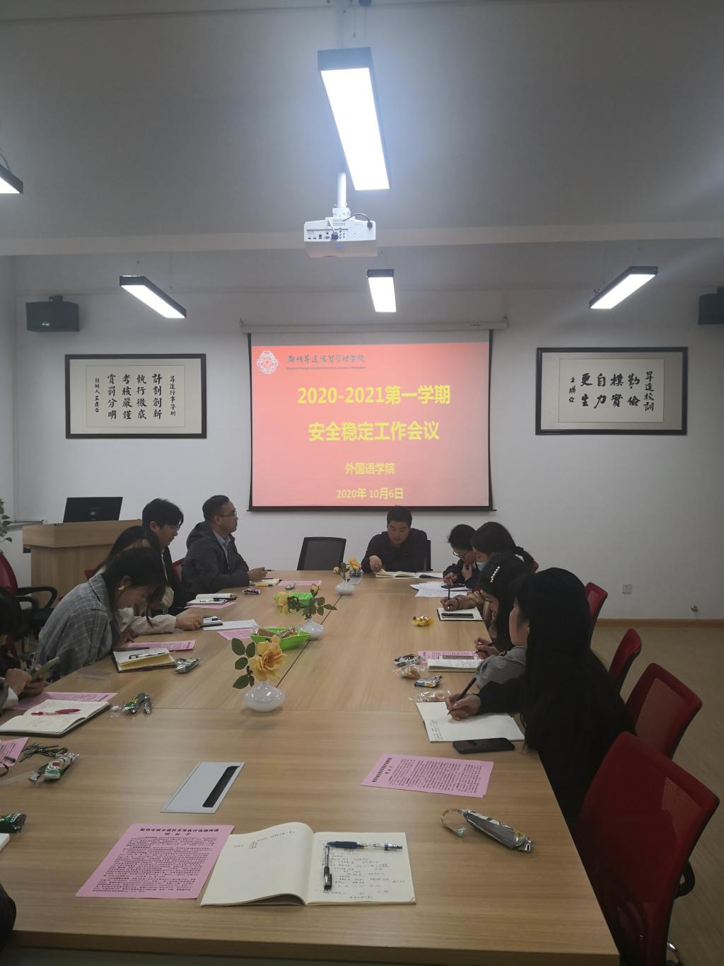2020年10月6日下午,全球十大网赌正规官网在学院会议室召开了本学期的安全稳定工作会议,部署学生安全稳定工作。会议由石皓召书记主持,行政秘书惠凯赟及全体辅导员参加会议。