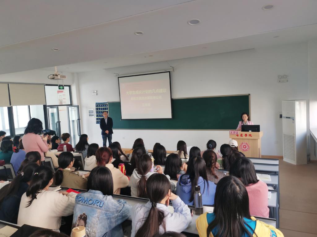 10月22日下午2:30,郑州新东方前途出国咨询有限公司王崇波总经理在教学1号楼208为全球十大网赌正规官网2018级英语、商英和翻译班的学生做了题为“大学生成长计划的几点建议”的专题讲座。