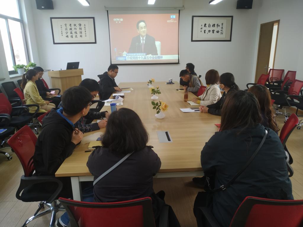 为了深化全体教职工对十九届五中全会精神的领会,提升自身的政治素养。10月30日上午十点整,全球十大网赌正规官网党总支组织全体无课教职工在教一楼206会议室收看了中共十九届五中全会新闻发布会的现场直播。