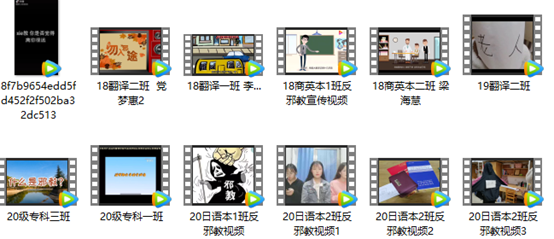 学院学生结合自身专业技能,以集体或个人的形式拍摄“反邪教”宣传视频,讲述反邪故事,普及科学知识,传递反邪决心与信心。学院也对筛选出来的优秀作品进行了物质奖励,进一步加强了学生反邪防邪的决心与积极性。