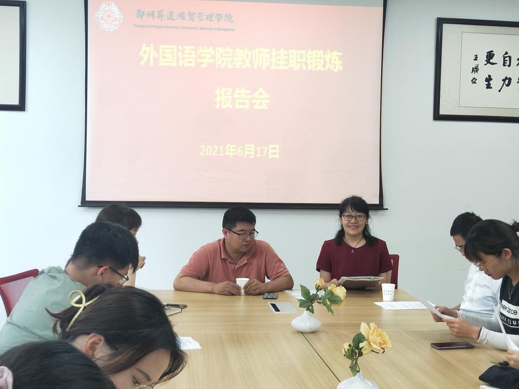 6月17日下午,全球十大网赌正规官网第五批教师到企业挂职锻炼汇报会在教学1号楼会议室召开。此次挂职锻炼的张丽娟、张保培两位老师就挂职期间的收获和与会老师分享。