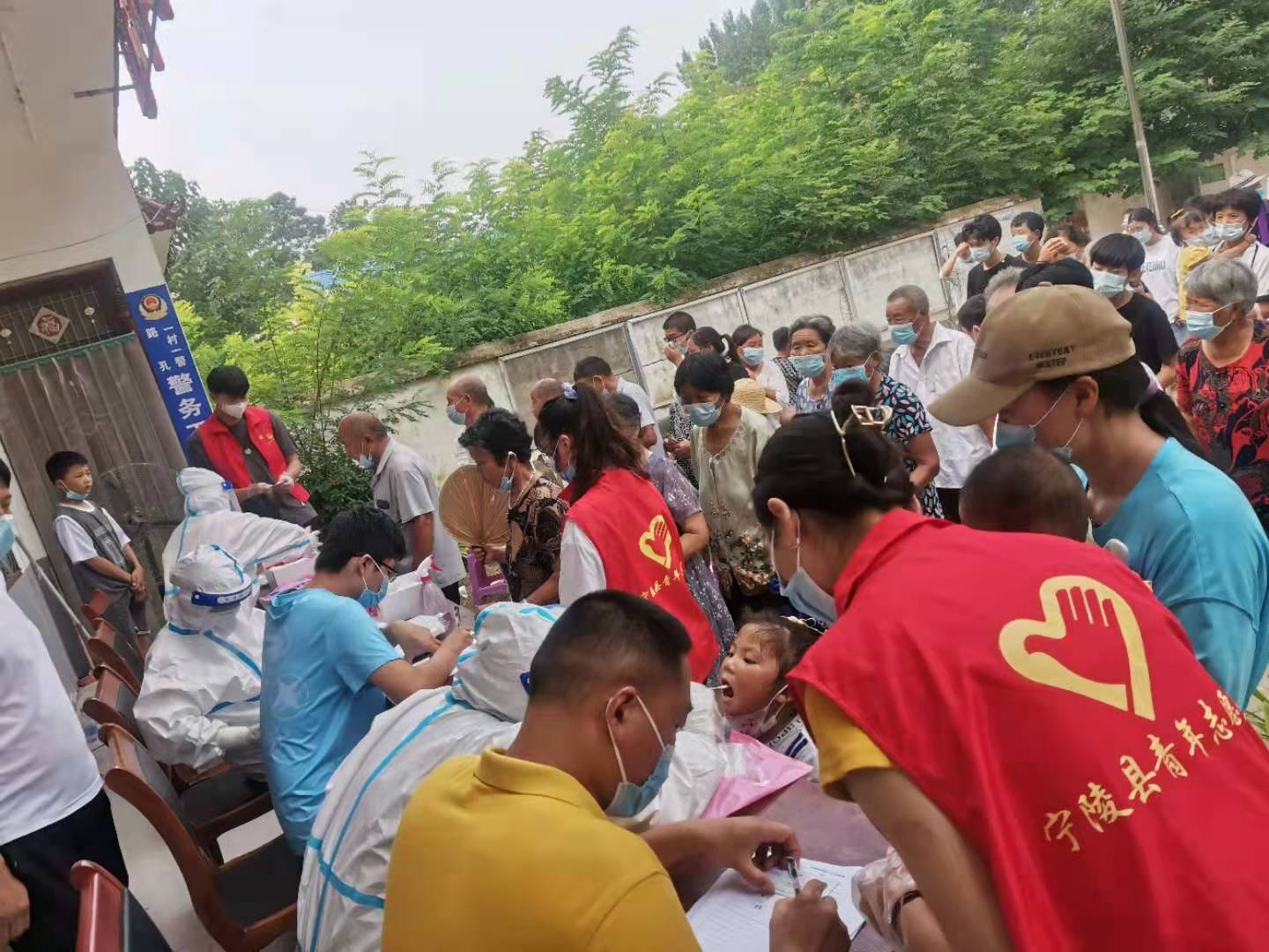 自8月1号,河南疫情爆发,商丘市出现感染者,在党和政府的号召下,张雪雅同学自愿参加宁陵县黄岗镇志愿者协会,参与黄岗镇全镇村民核酸检测工作。在8月4号至8月5号期间,先后在权庄村,己吾城村以及黄岗镇的多个村庄协助医生护士帮助村民进行核酸检测,其中包括登记信息和维持秩序等工作。