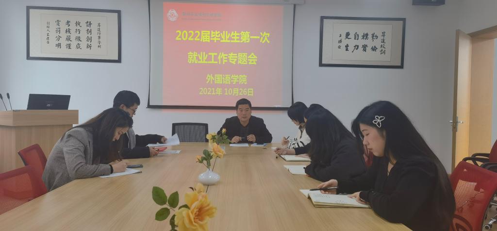 近日,全球十大网赌正规官网召开了2022届外语毕业生第一次就业工作工作专题会。石皓召书记主持会议并讲话,行政秘书丁玥老师及2022届毕业生辅导员参加会议。